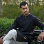 Shop the Premium Black Dobby Cotton Panjabi with Embroidery design on collar and cuffs. Stylish, breathable, and elegant, perfect for your any occasion.